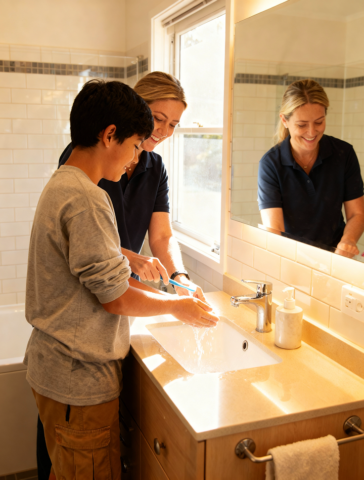 We assist with hygiene, dressing, meal preparation, and daily routines through our NDIS personal care and in-home support services.